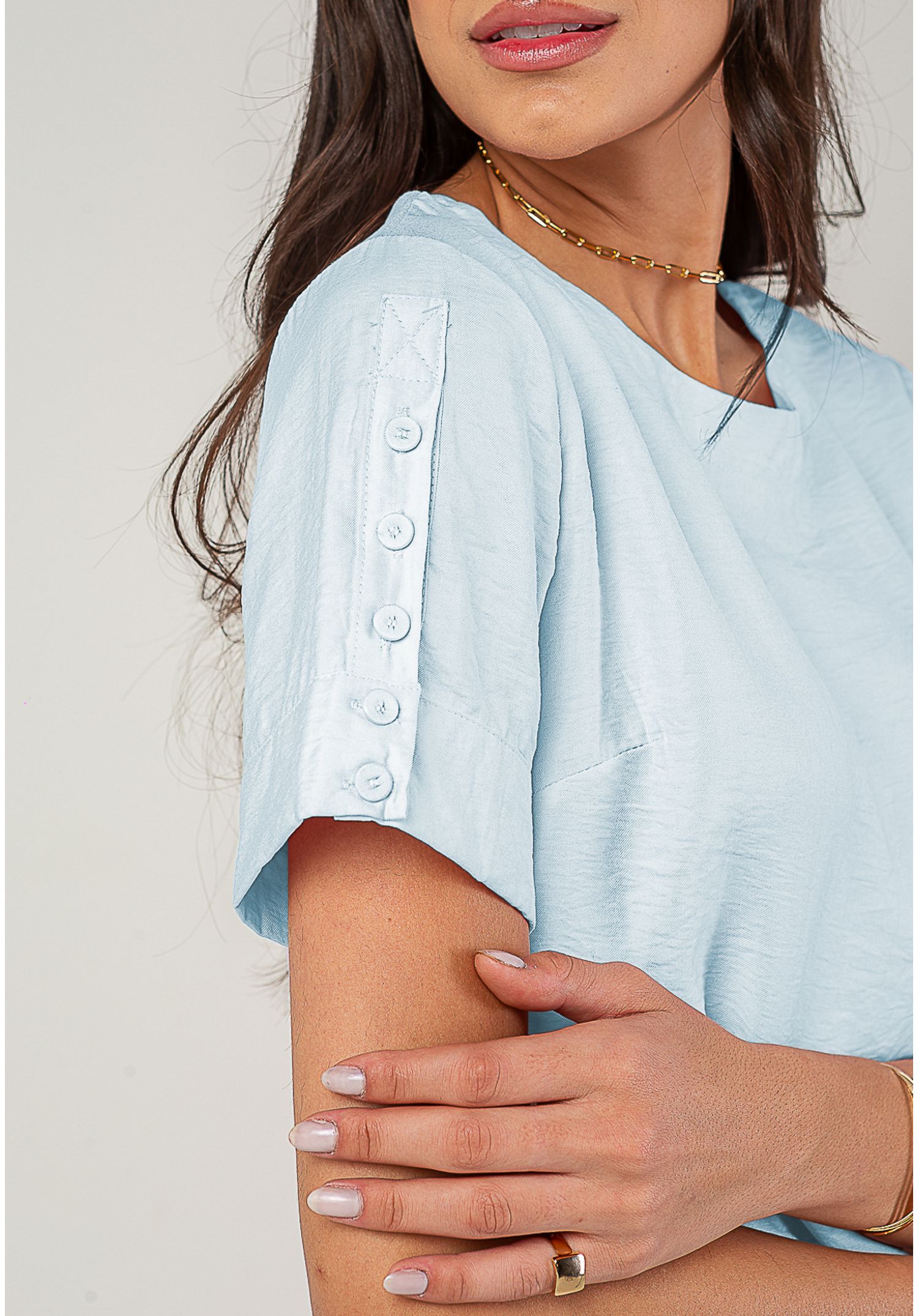 A blusa feminina com botões decorativos na manga é uma peça leve, elegante e perfeita para compor looks modernos com um toque clássico.