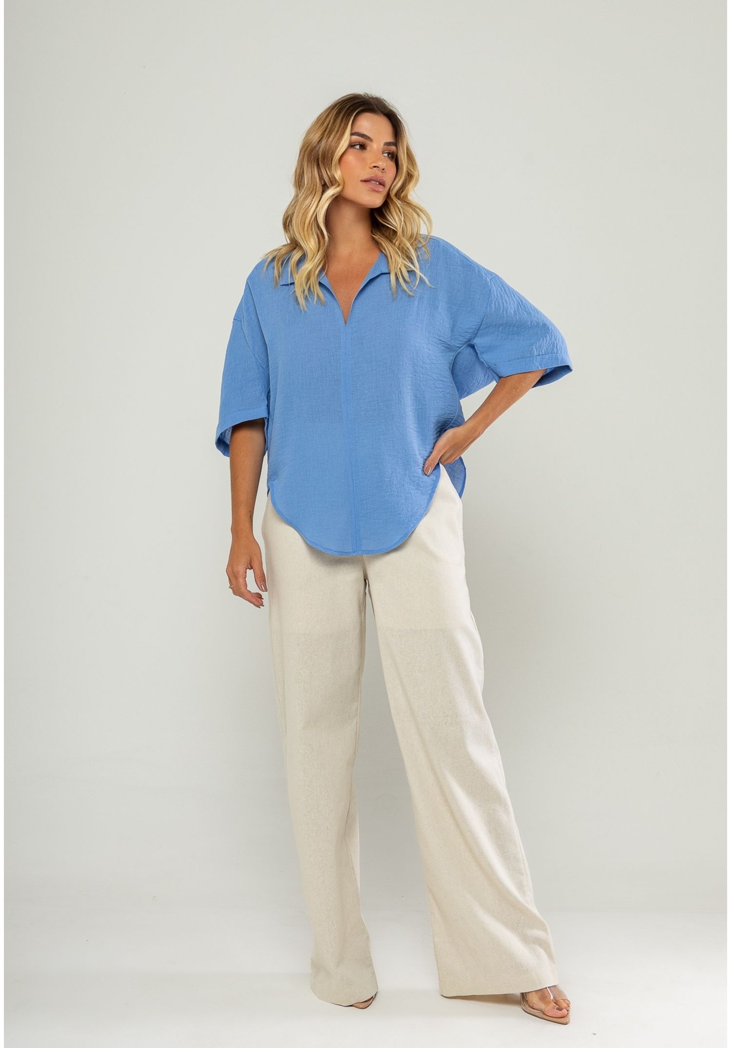 Blusa Ampla Manga Curta E Decote V Azul Salvatore