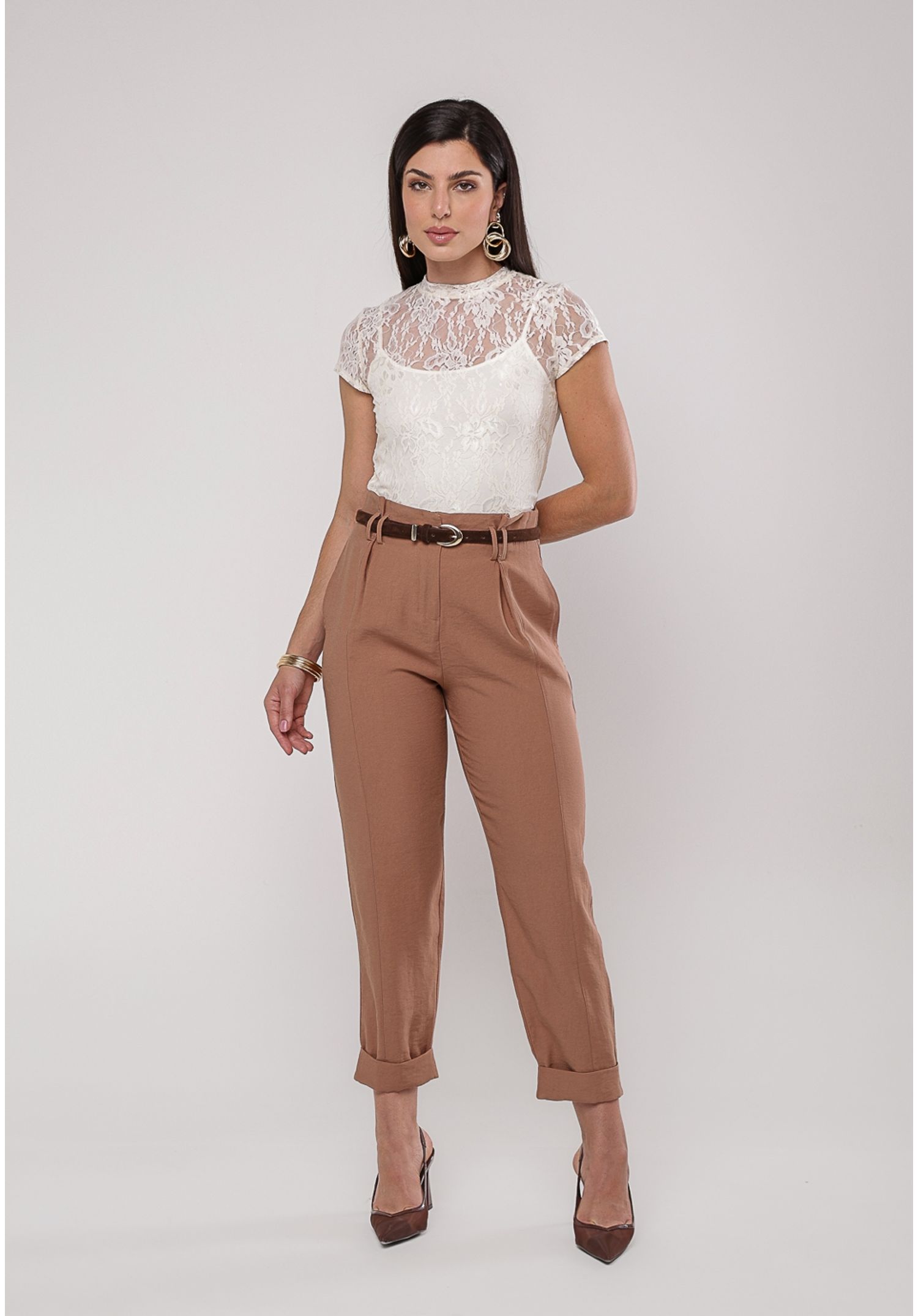 Versátil e estilosa, essa blusa de renda combina perfeitamente com peças de alfaiataria, saias ou jeans, sendo uma escolha certeira para diversas ocasiões, desde o trabalho até eventos especiais.