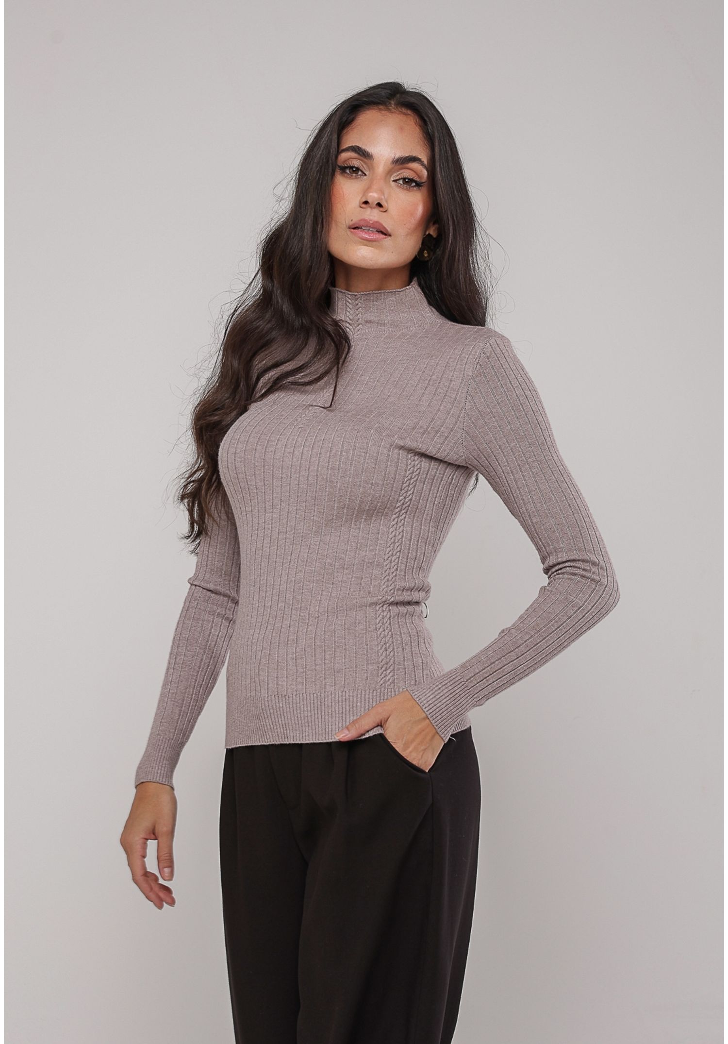 Aposte em uma peça versátil e sofisticada com a nossa blusa de tricot canelado de gola alta.