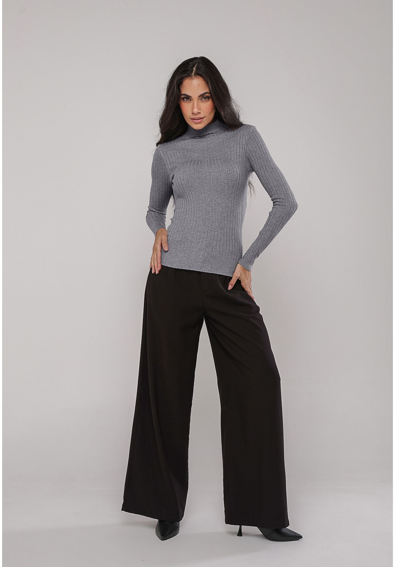 Blusa de Tricot Canelado Gola Alta Cinza Salvatore - Tamanho Único