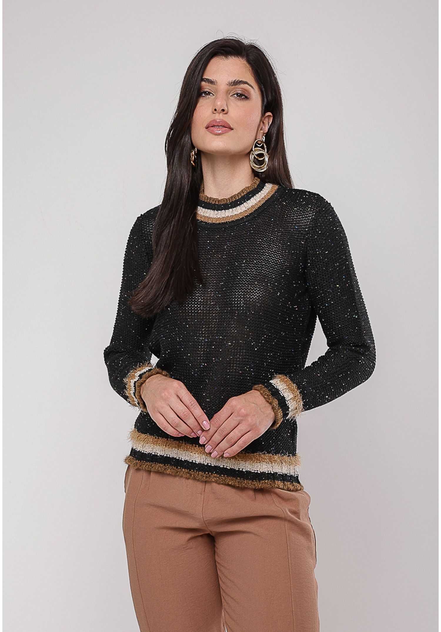 Blusa de Tricot com Fio Botonê Gola Listra Preto Salvatore - Tamanho Único