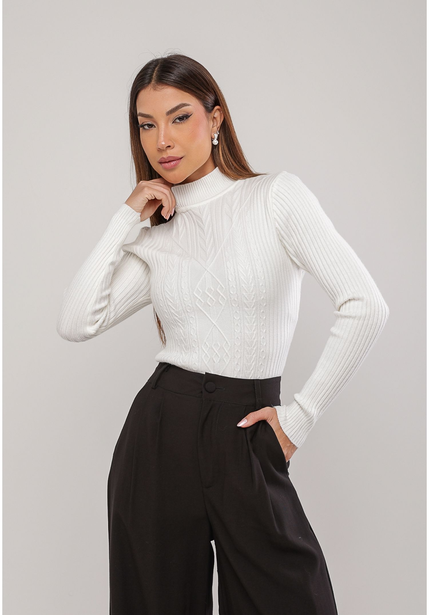 Blusa de Tricot Modal com Gola Alta e Manga Canelada Branco Salvatore - Tamanho Único