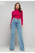 Blusa Gola Alta Manga Longa Malha Canelada Rosa Salvatore Fashion