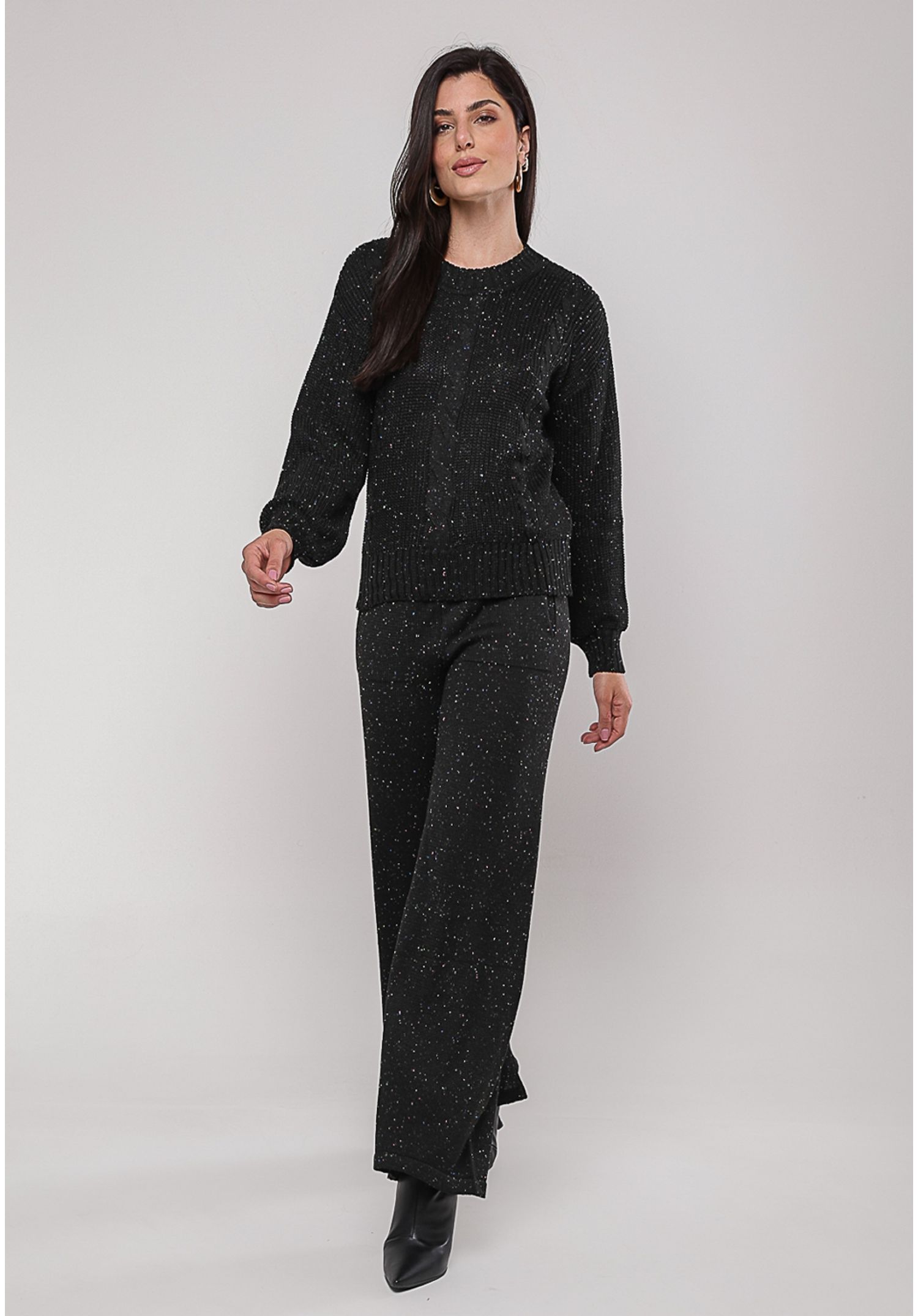 Calça De Tricot Em Fio Botonê Wide Leg Preto Salvatore - Tamanho Único