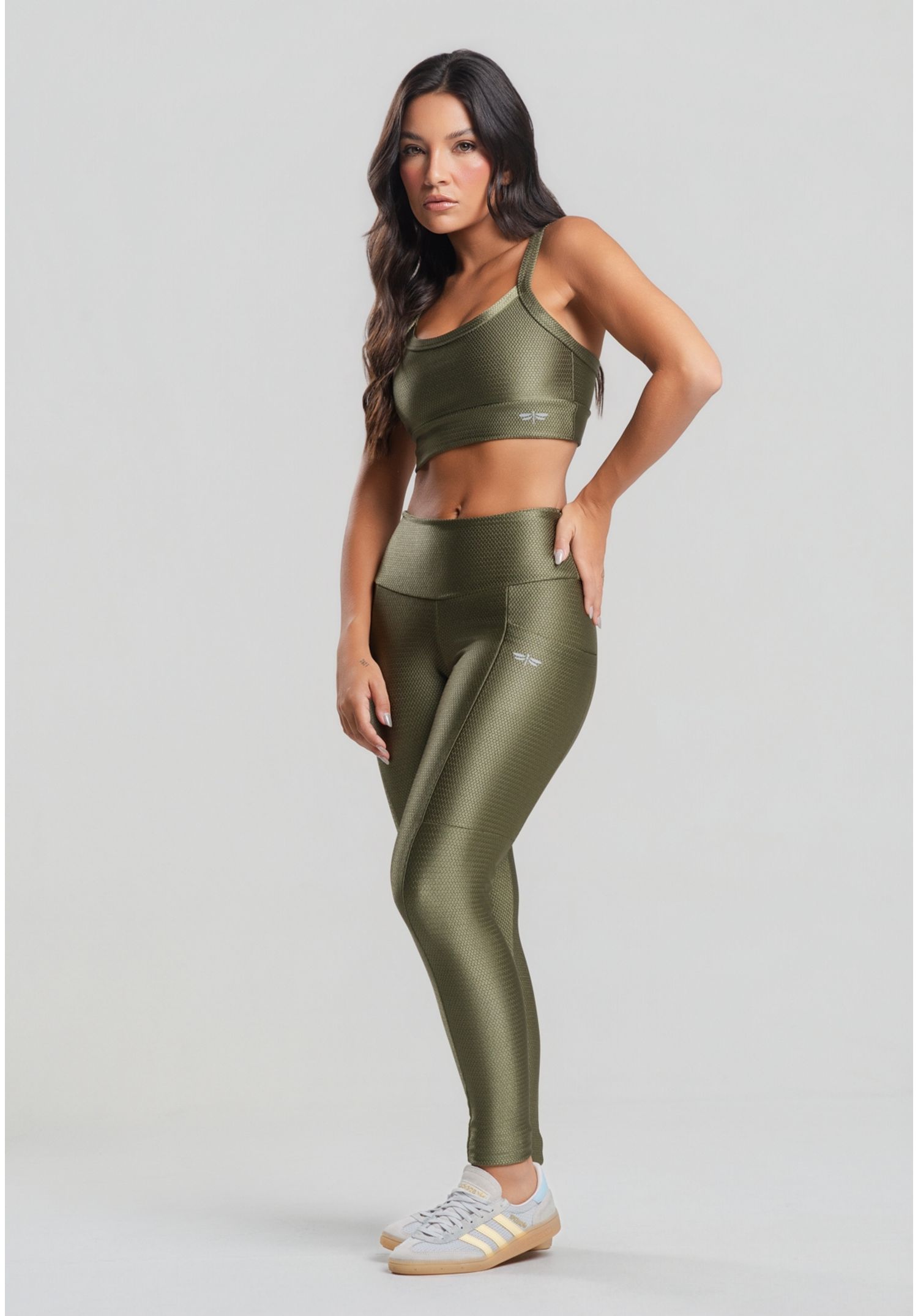 Calça Legging Poliamida Texturizada Com Brilho Verde Salvatore