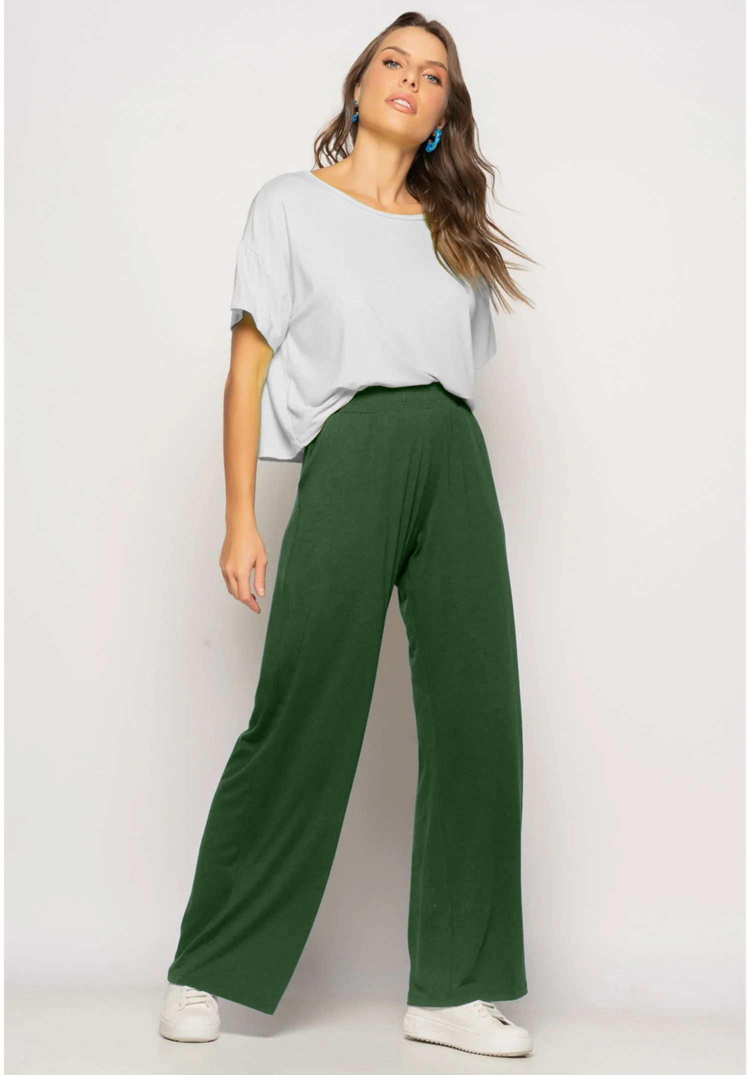 Calça Wide Leg Com Bolso Malha Musgo Salvatore Fashion