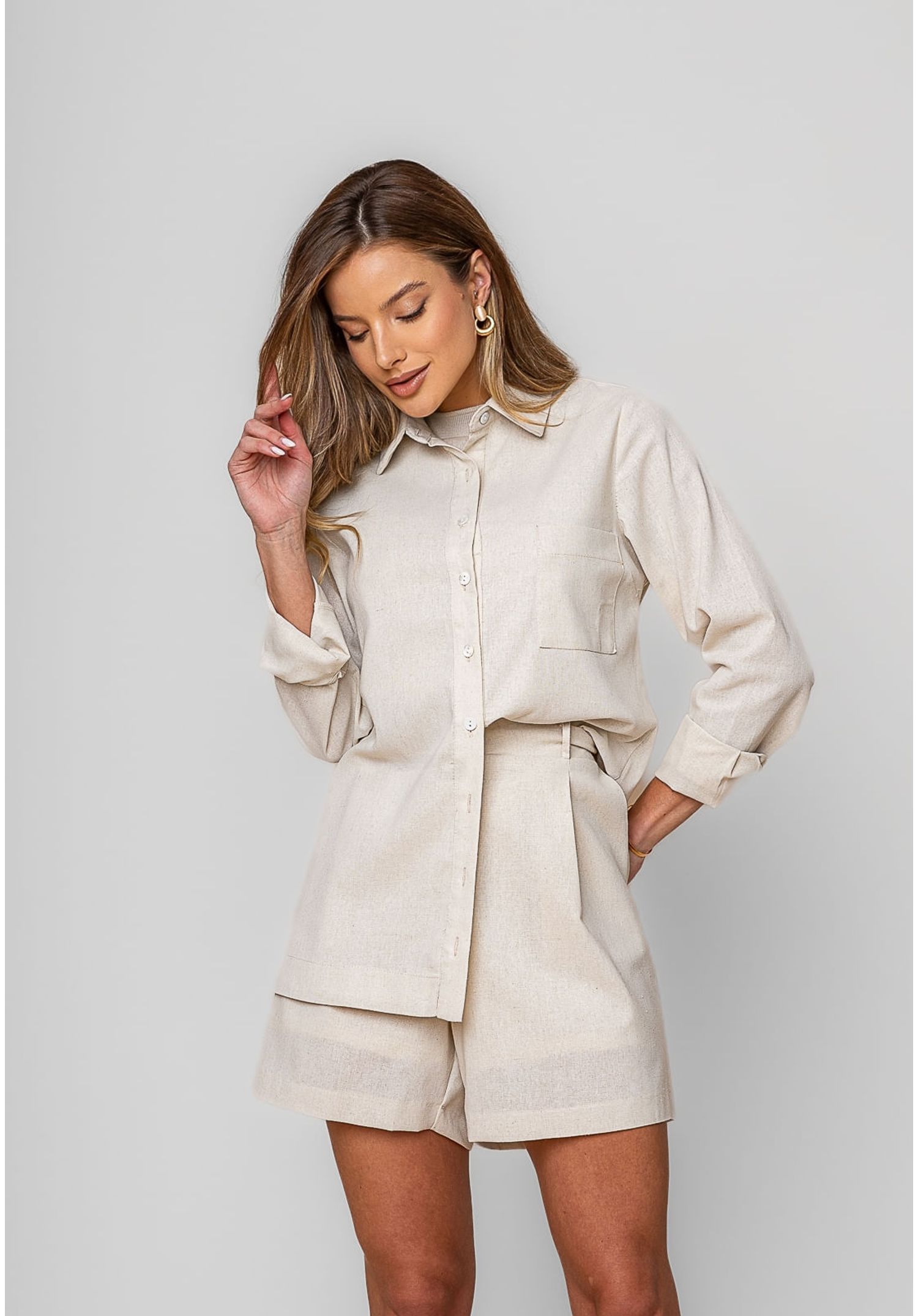Confeccionada em linho, tecido nobre e respirável, ela tem caimento soltinho e toque natural, ideal para os dias mais quentes. A modelagem ampla garante conforto, enquanto os detalhes clássicos como a gola tradicional, fechamento por botões frontais e mangas longas com punho ajustável trazem praticidade e estilo.