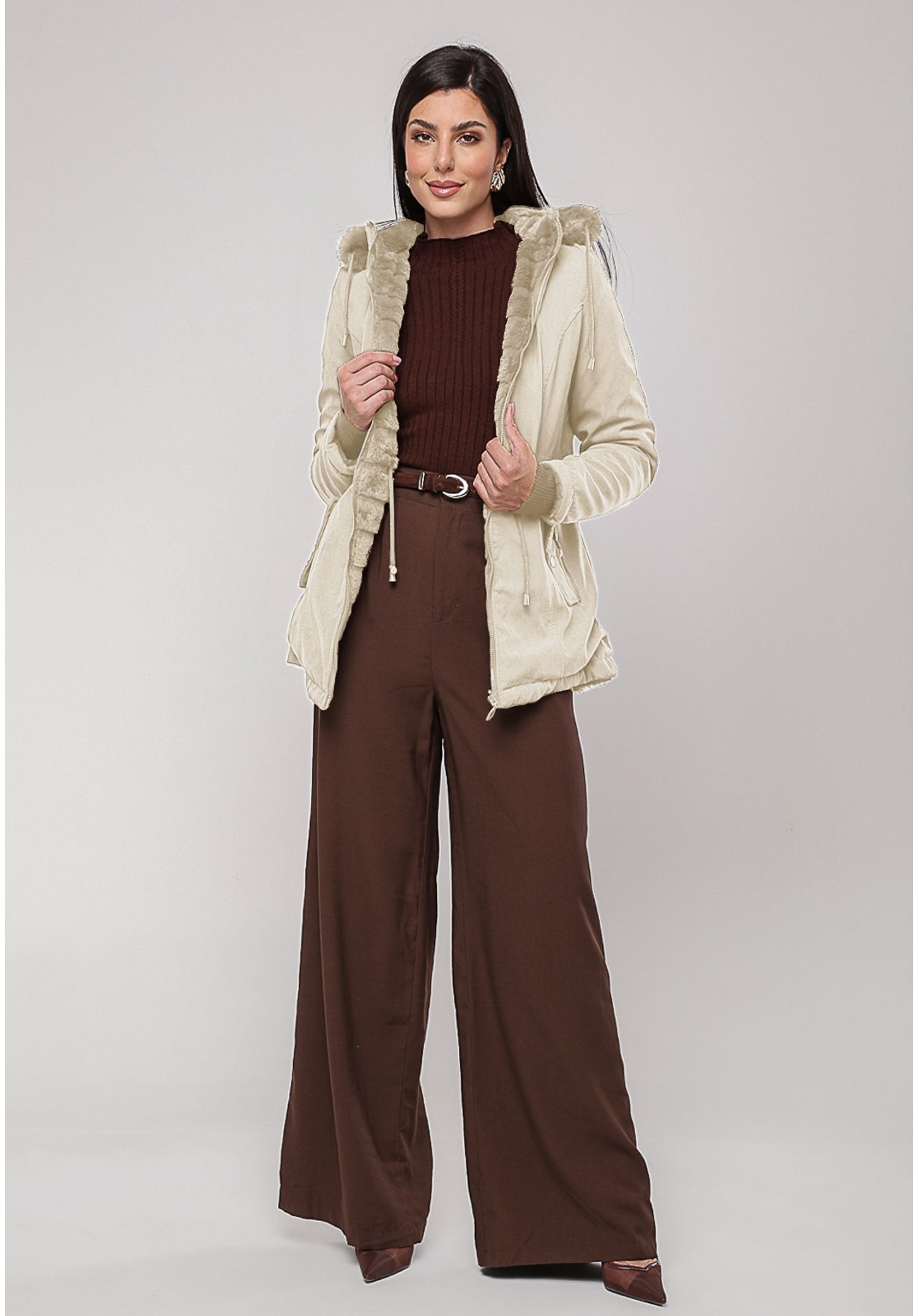 Casaco De Sarja Dupla Face Com Pelinho Bege Salvatore