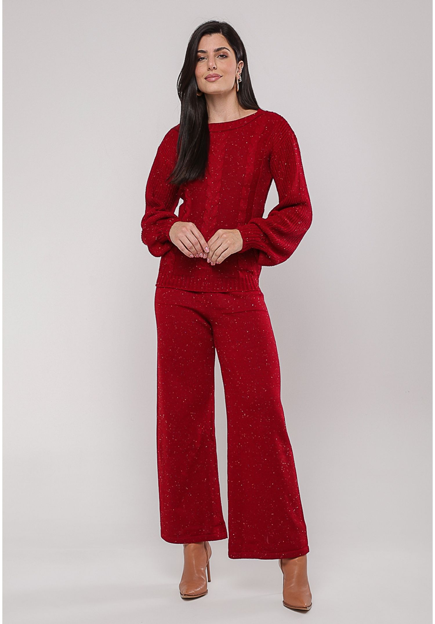 Conjunto de Tricot em Fio Botonê Blusa e Wide Leg Vermelho Salvatore - Tamanho Único