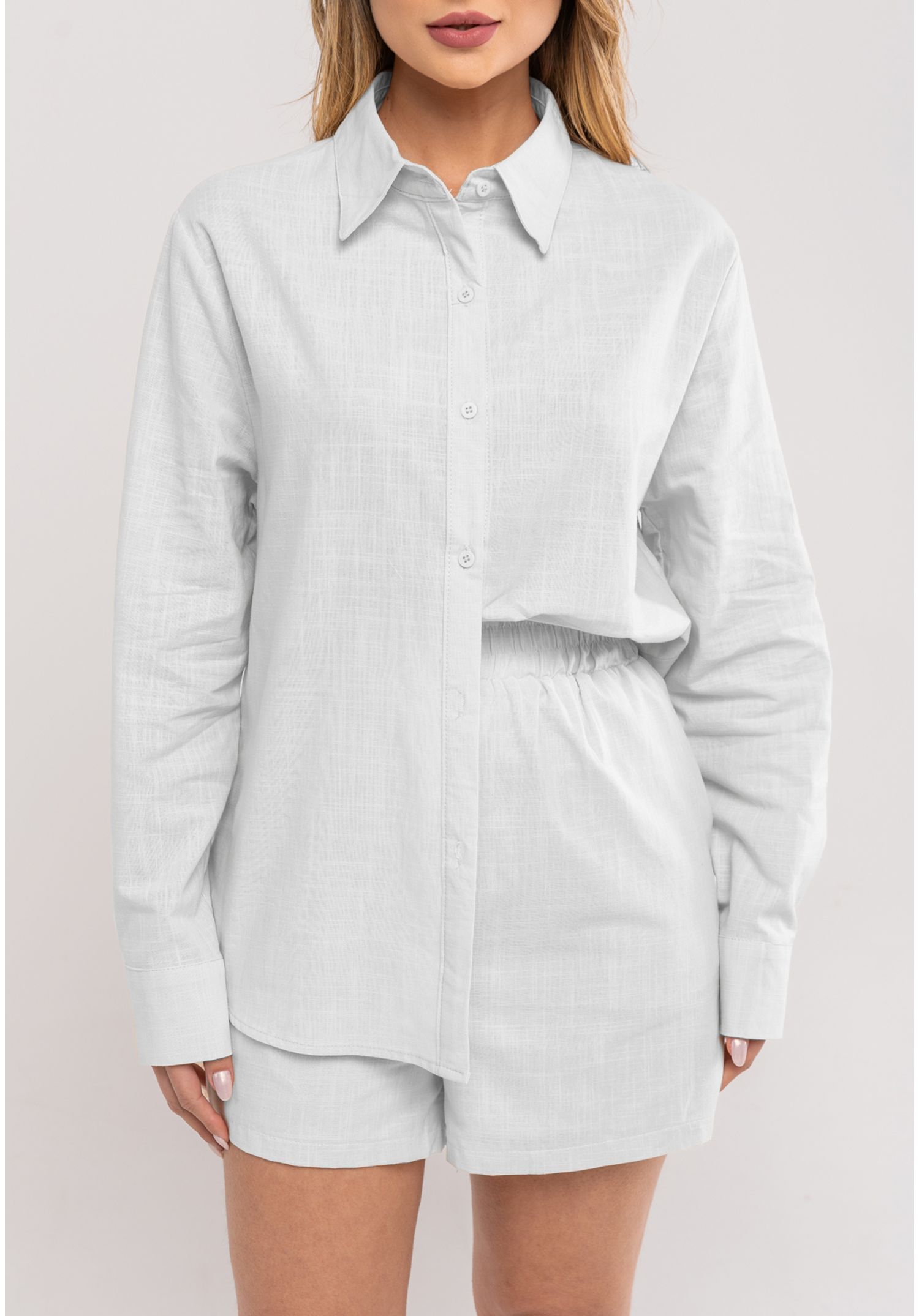 Conjunto Feminino De Camisa E Short Em Algodão Branco Salvatore