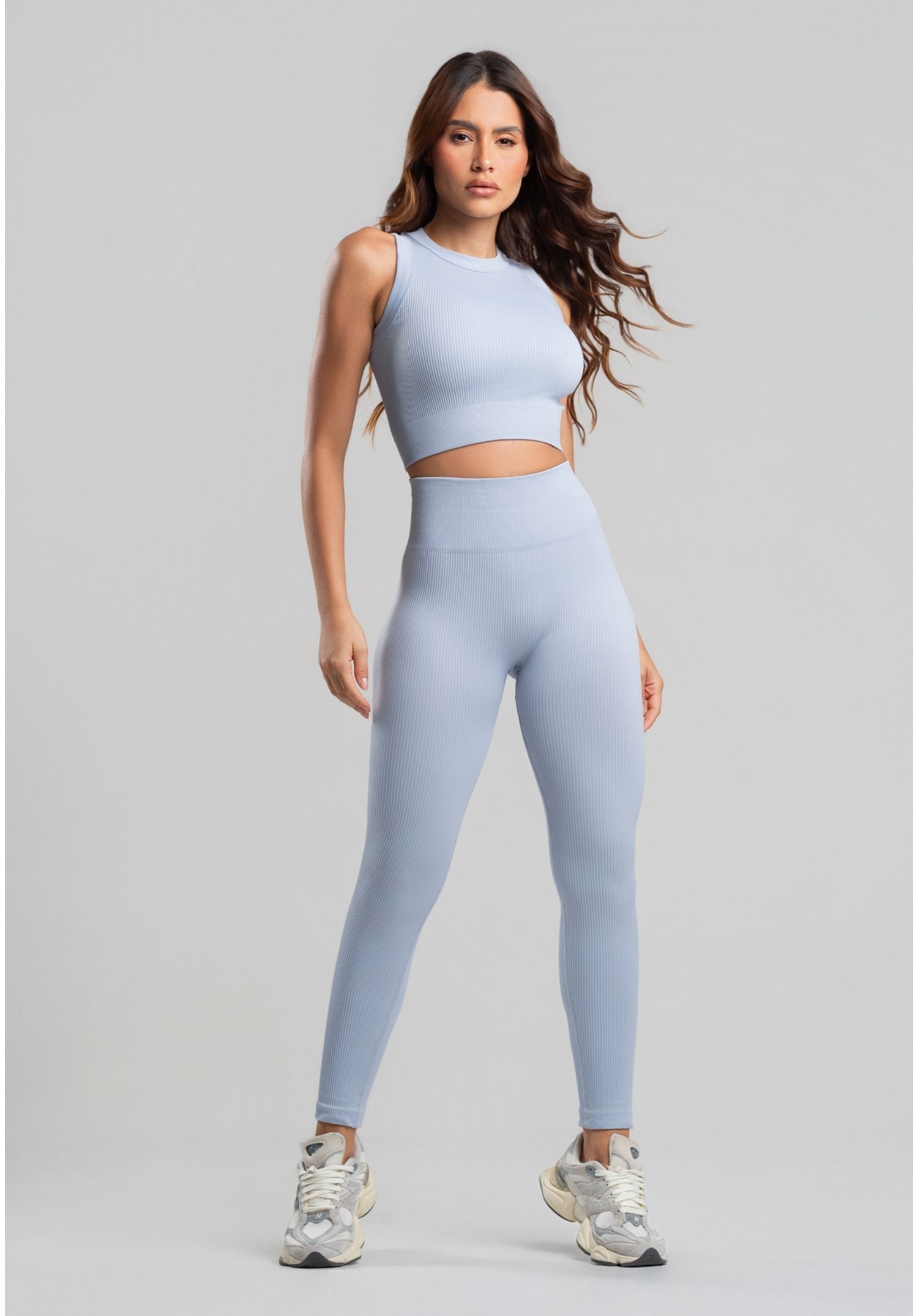 Conjunto Fitness Calça e Top Regata Sem Costura Azul Salvatore