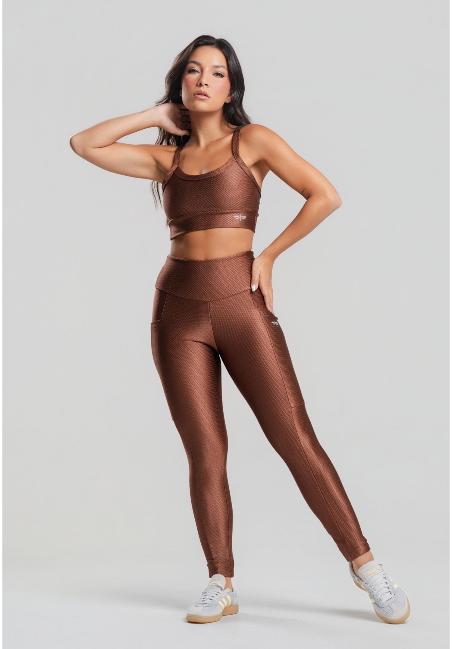Conjunto Fitness Poliamida Calça e Top Texturizado com Brilho Marrom Salvatore
