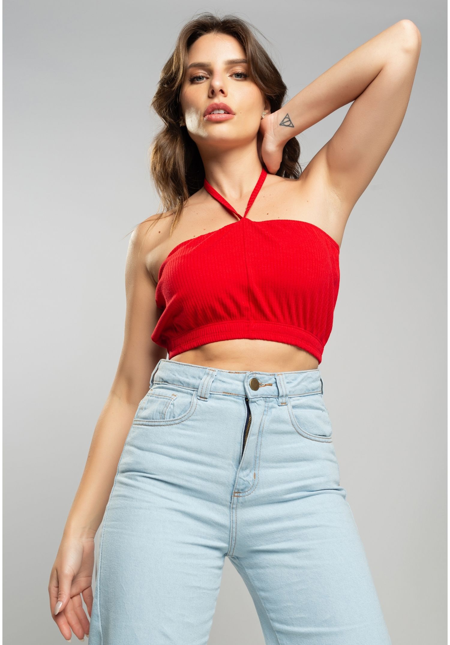 Cropped tomara que caia confeccionado em malha canelada, com recortes estratégicos, amarração e elástico para garantir uma sustentação ideal e um ajuste perfeito.