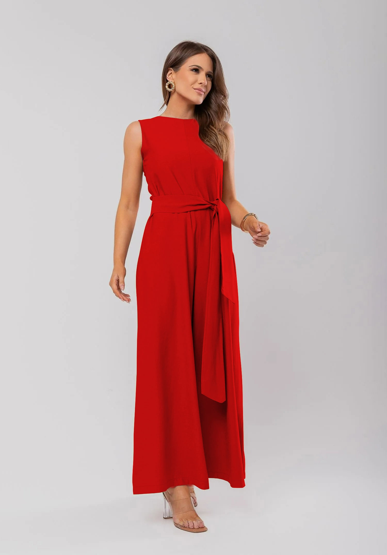 Macacão Regata Feminino Alfaiataria Pantalona Vermelho Salvatore Fashion