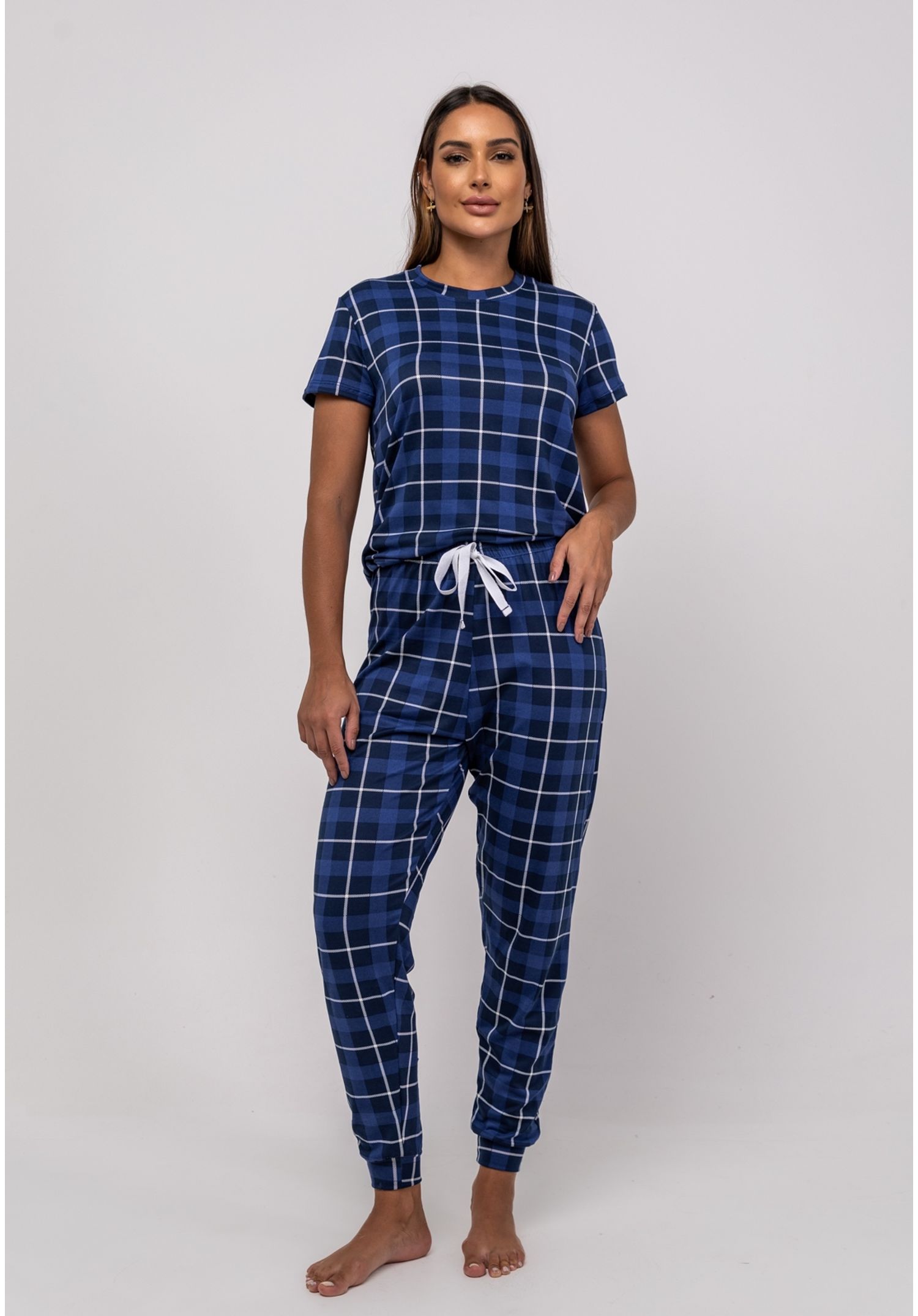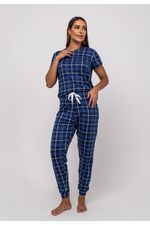 Pijama Calça e Blusa M/C Malha Xadrez Azul Salvatore Fashion