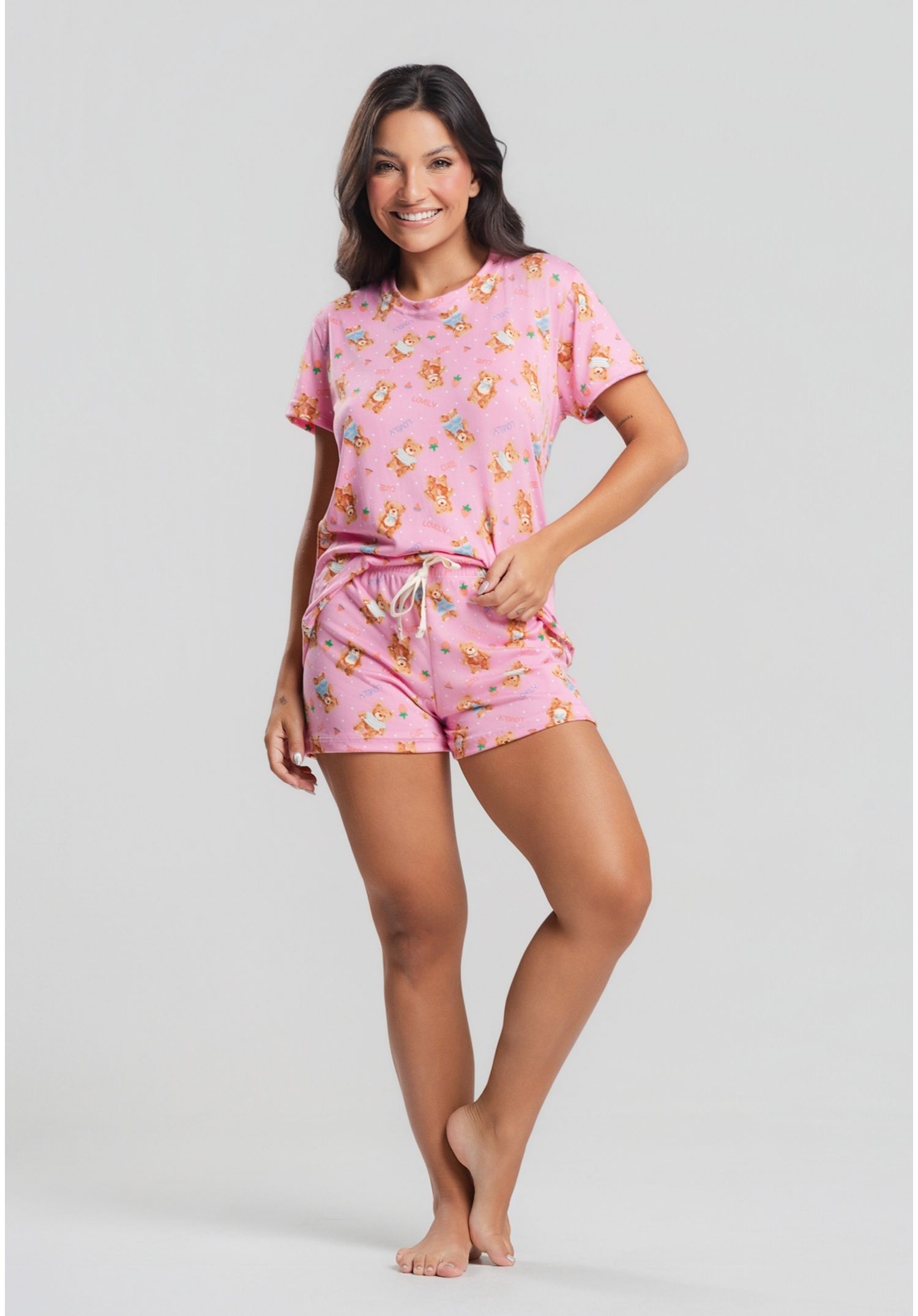 Pijama Short e Blusa M/C Malha Urso Rosa Salvatore Fashion