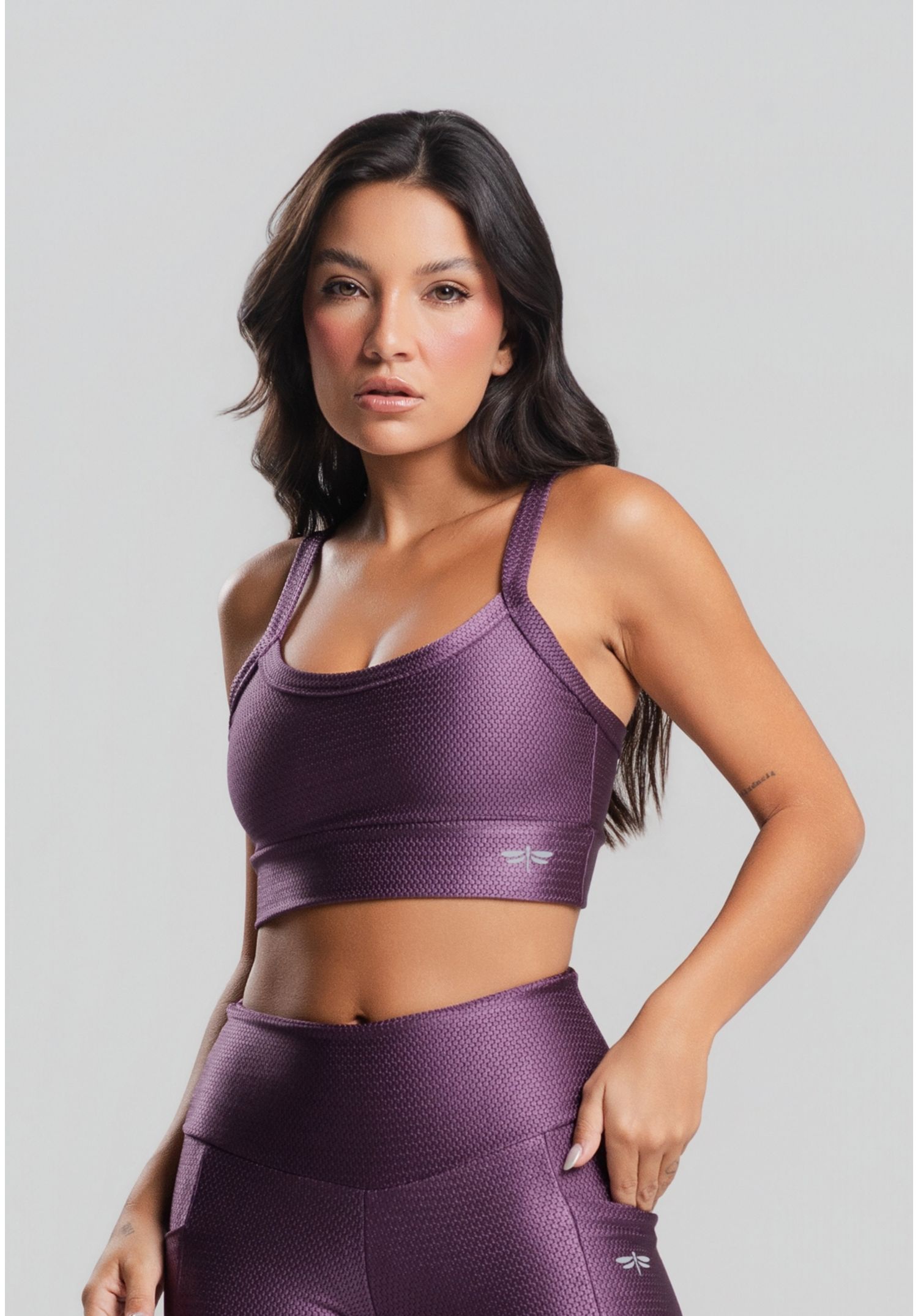 Top Fitness Poliamida Texturizado Com Brilho Roxo Salvatore