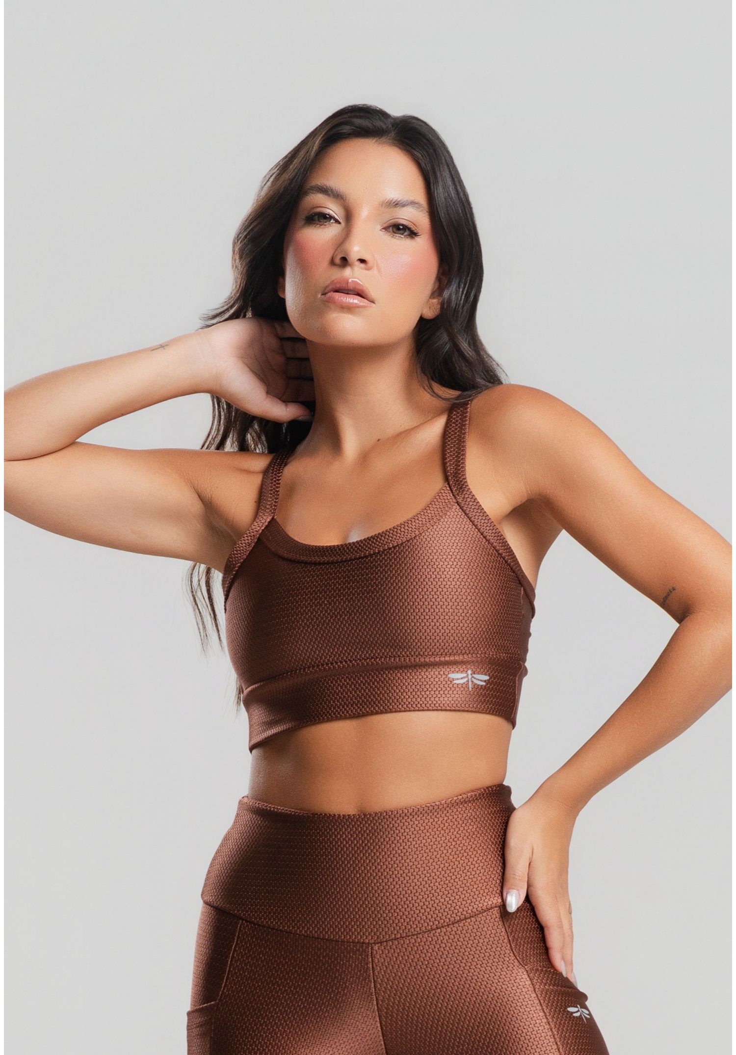 Top Fitness Poliamida Texturizado Com Brilho Marrom Salvatore