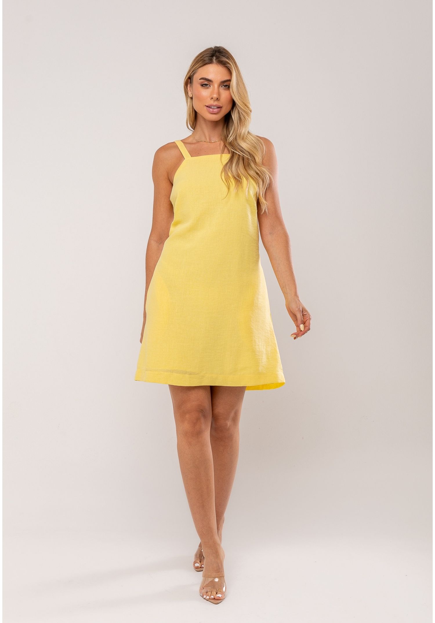 Vestido Curto Com Alça Fina e Bolso Amarelo Salvatore