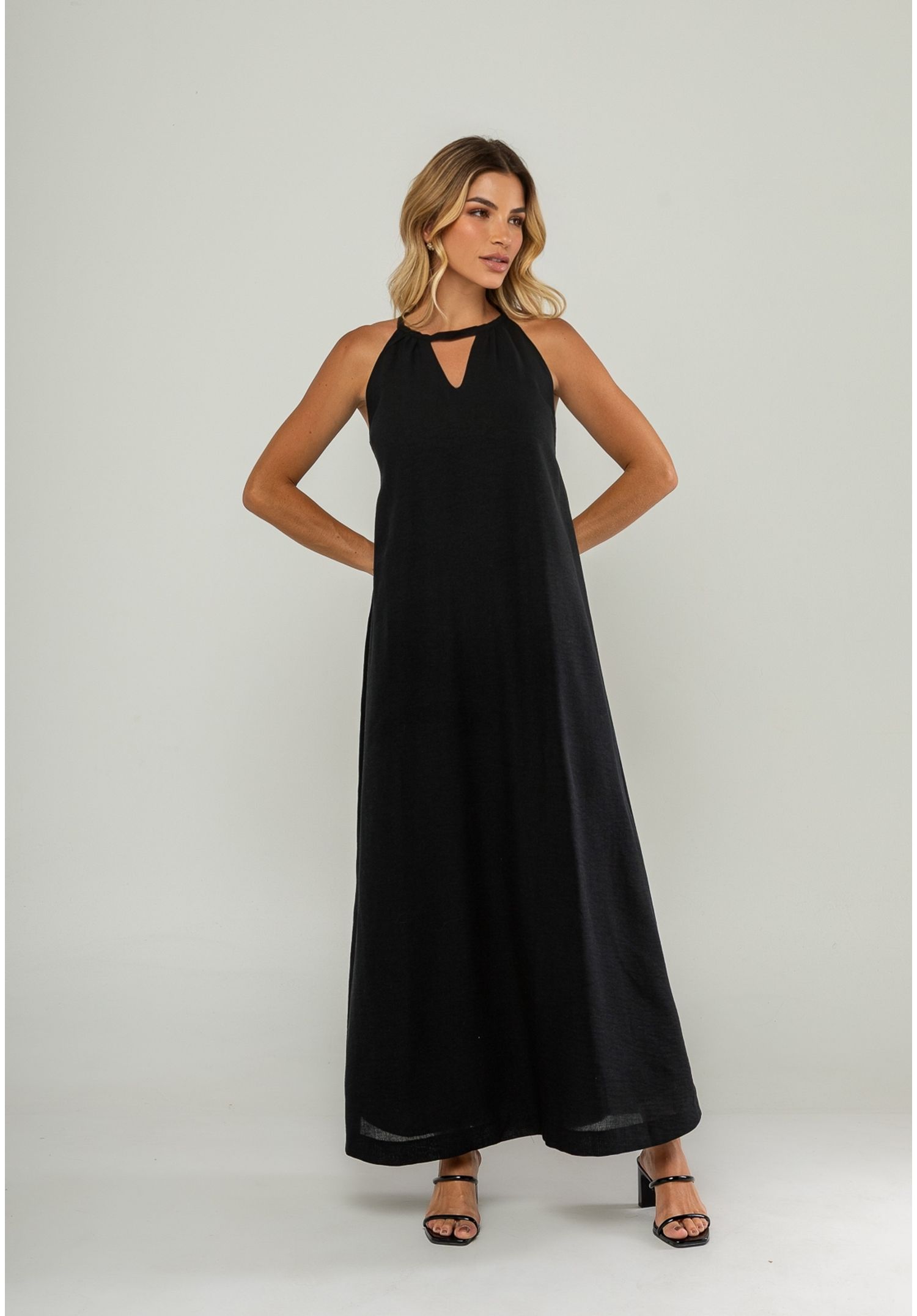 Vestido Longo Decote Com Recorte E Amarração Preto Salvatore