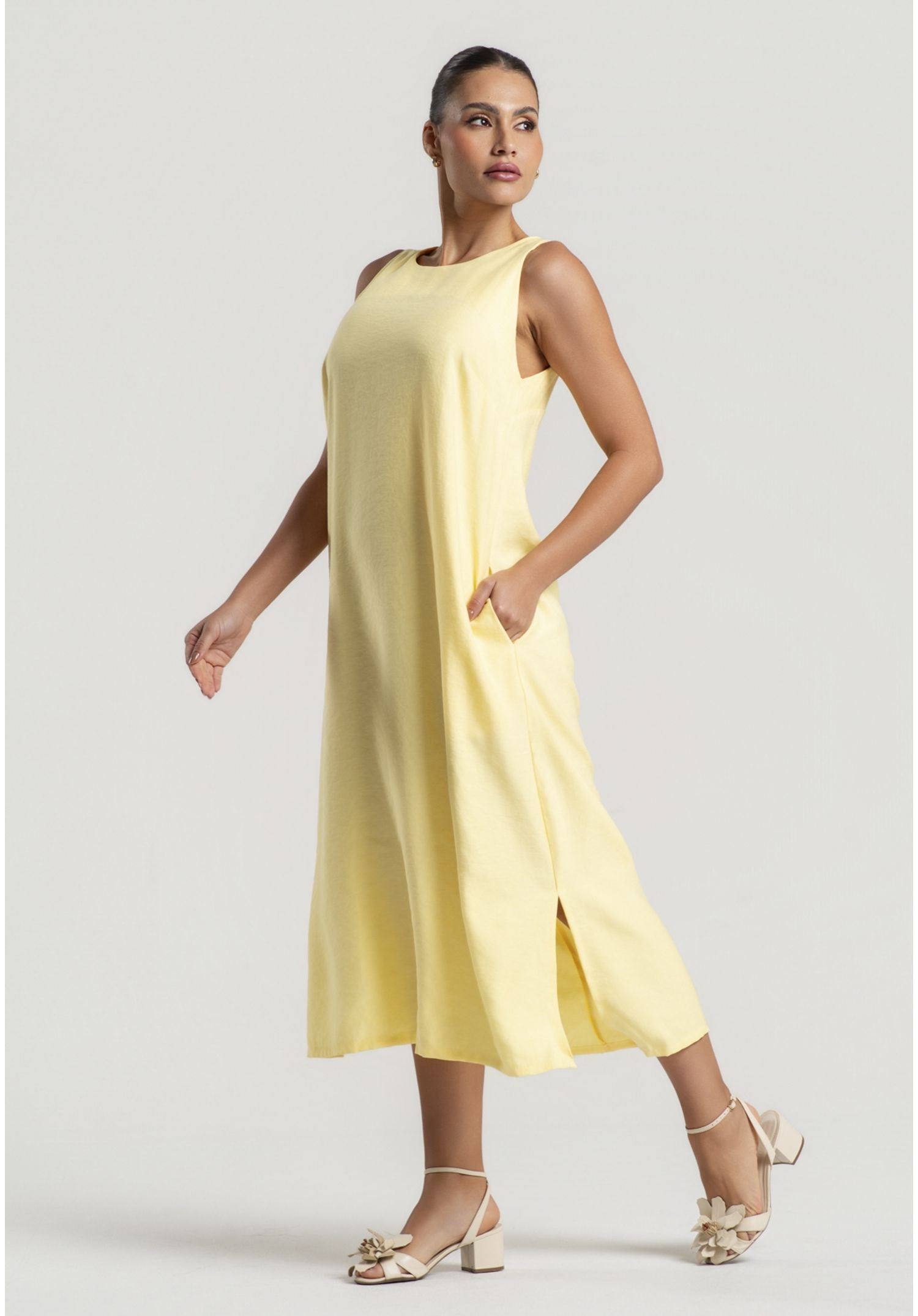 Vestido Midi Alfaiataria Marrant Regata Com Fendas e Bolsos Amarelo Salvatore