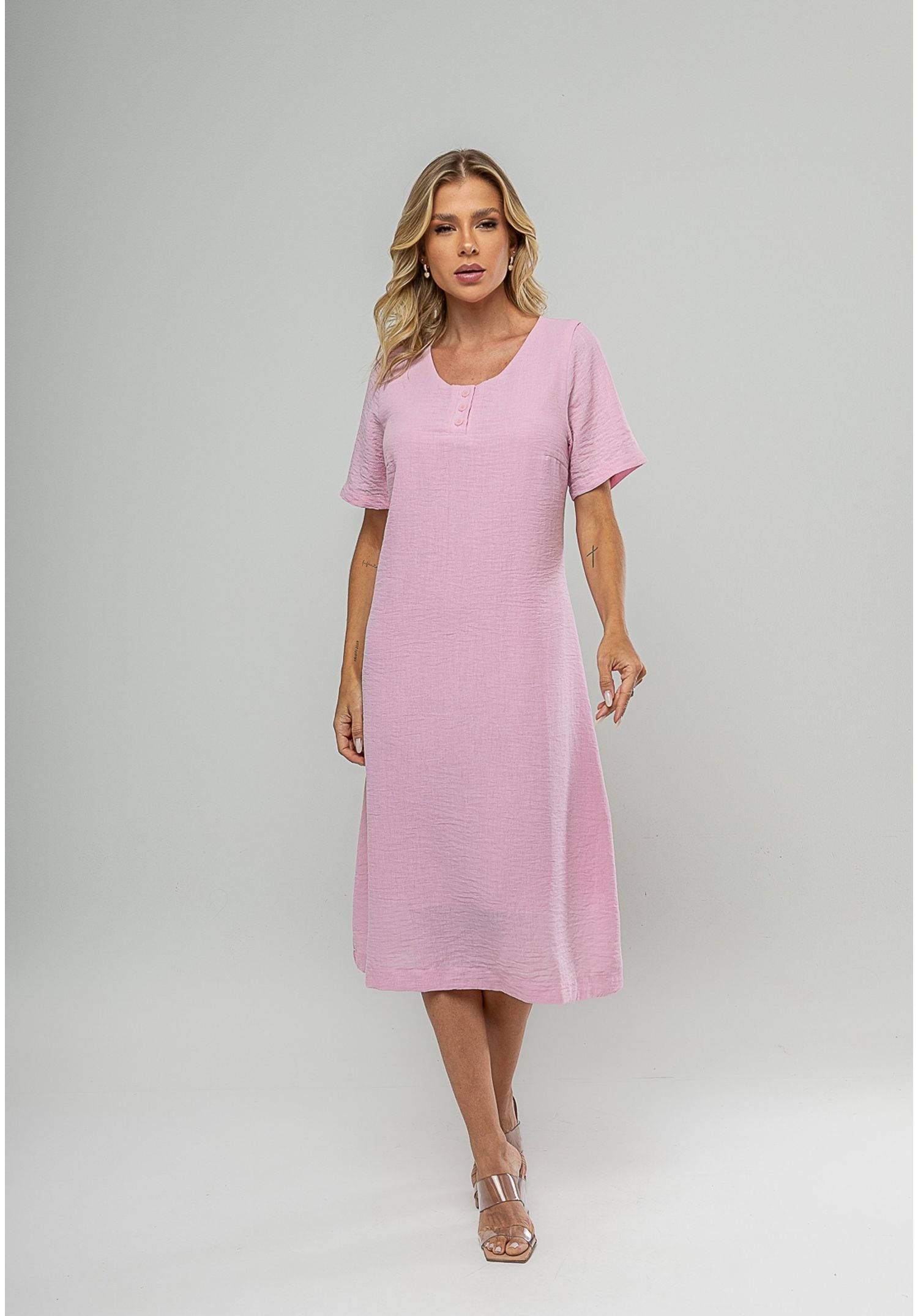 Com proposta clean e elegante, este vestido midi feminino é ideal para quem valoriza praticidade sem abrir mão de um visual bem-acabado.