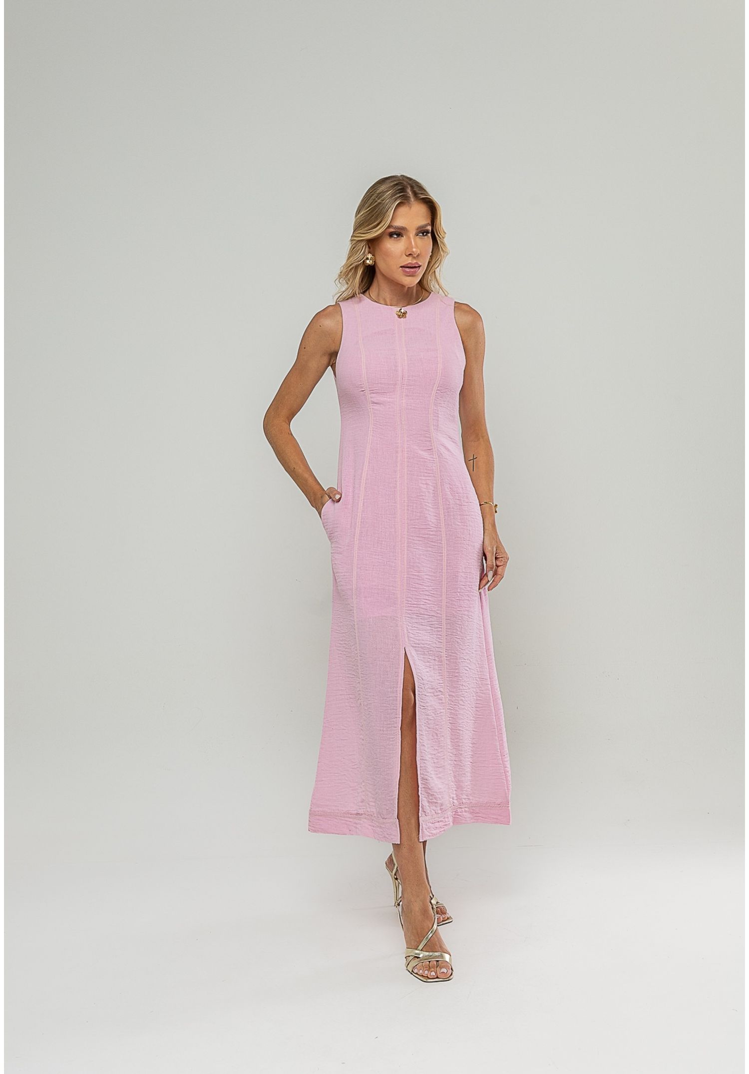 Com uma proposta elegante e atual, este vestido midi feminino se destaca pelos detalhes que fazem a diferença.