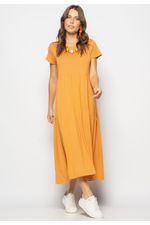 Vestido Midi Manga Curta Com Babado Caramelo Salvatore